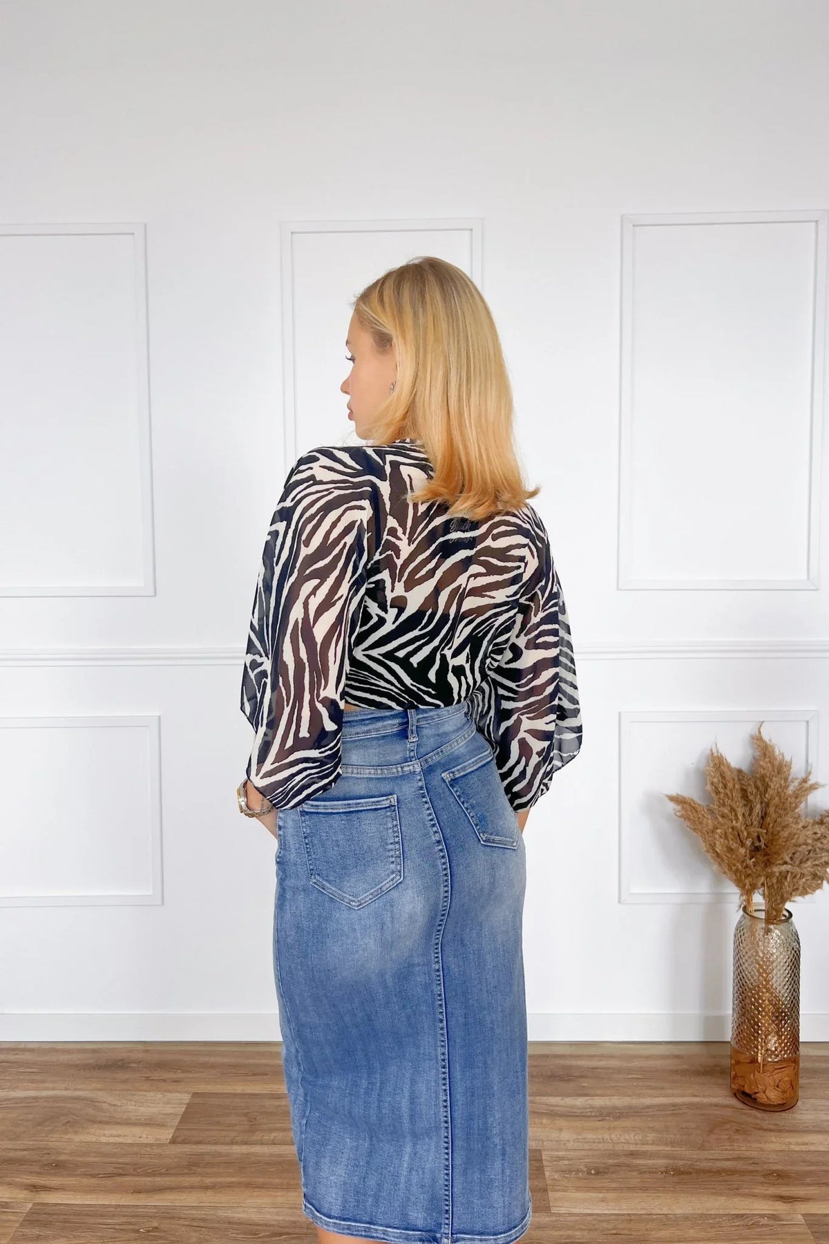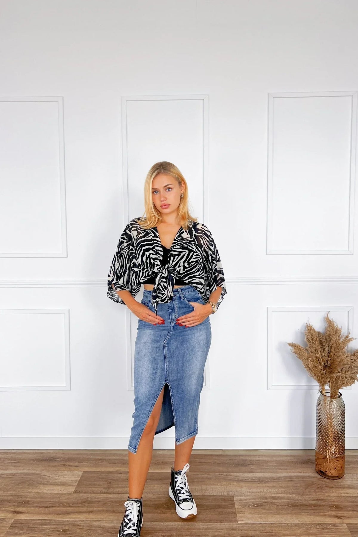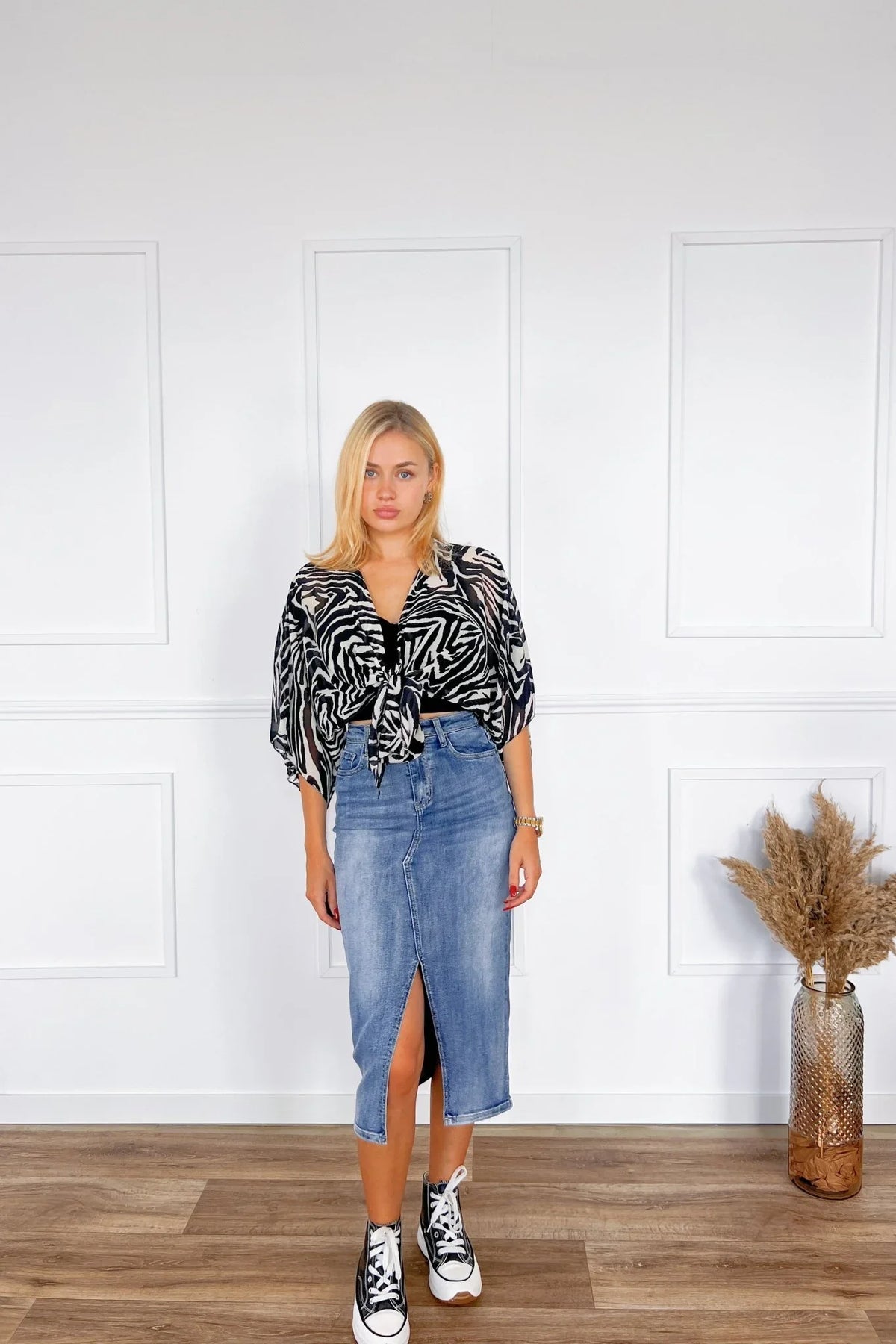 La Falda Costa es una falda de tejano elástico que se ajusta a tu figura y se cierra con cremallera. Es ideal para lucir moderna y combinar fácilmente con tus looks favoritos en cualquier ocasión.