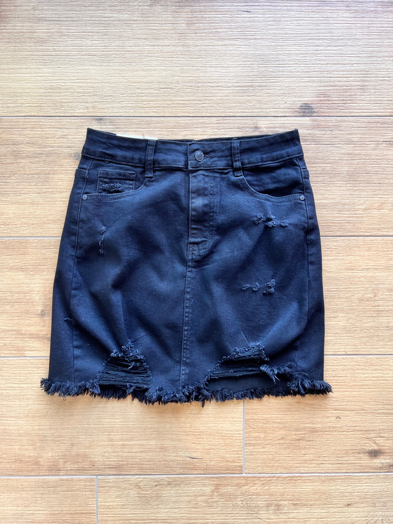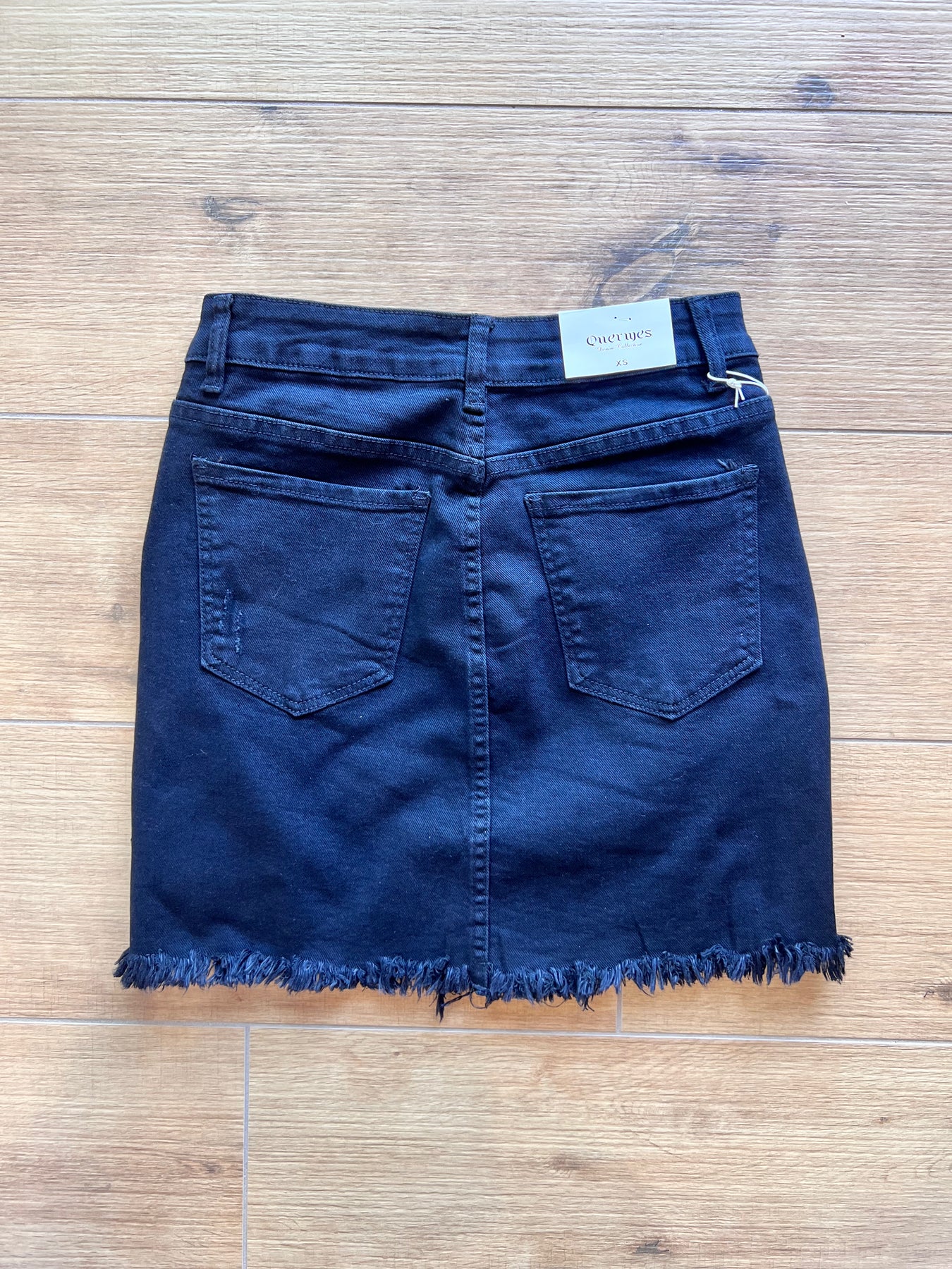 Falda de denim elástico en color negro, pensada para quienes buscan comodidad sin perder estilo en su día a día. Con un diseño versátil, es adecuada para looks casuales o semiformales.