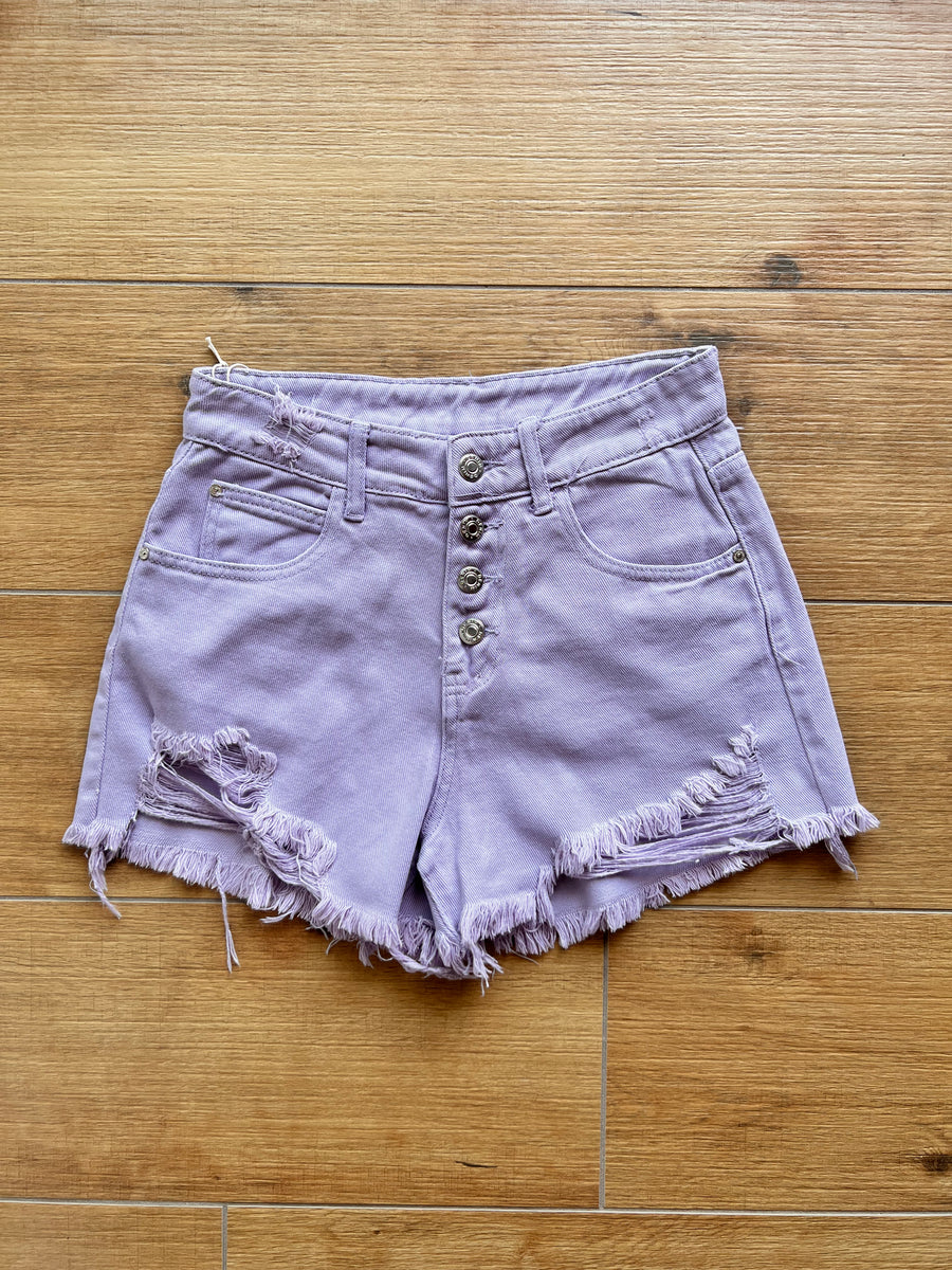 Short en tejano no elástico con cierre de botón y cremallera lleva bolsillos delanteros y traseros