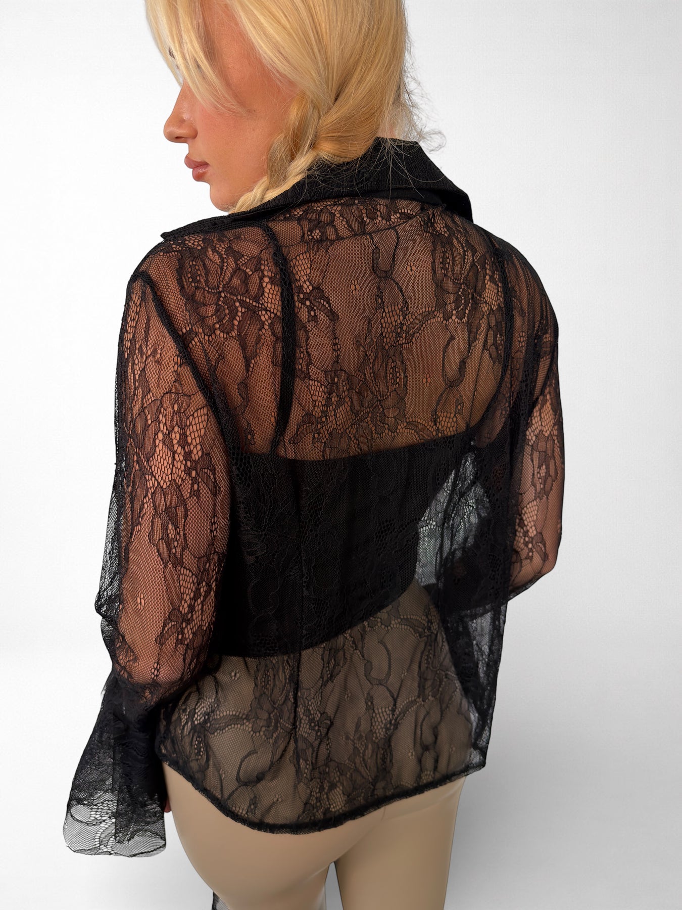 Camisa Adara: elegancia atrevida en encaje delicado con cierre de botones y puños de volantes que capturan la esencia del lujo bohemio. Cada detalle está diseñado para quienes se atreven a destacar, combinando texturas sofisticadas con un toque de rebeldía femenina. Perfecta para noches memorables o looks cotidianos que exigen presencia. Una prenda que susurra confianza y estilo sin pedir permiso.