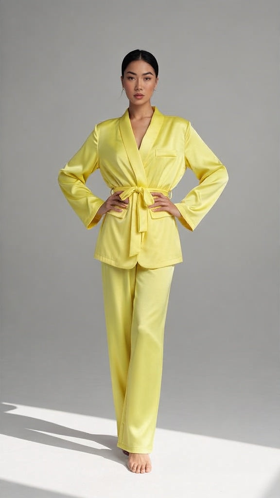 Conjunto Raso de diseño audaz que combina elegancia italiana con funcionalidad moderna. Fabricado en Italia con una composición de 95% poliéster y 5% elástico, ofrece comodidad y movimiento sin comprometer el estilo. Cuenta con bolsillos prácticos y lazos ajustables tanto en el blazer como en la cintura, permitiéndote personalizar el fit según tu cuerpo. Perfecto para quien busca prendas versátiles que transicionen sin esfuerzo de día a noche.